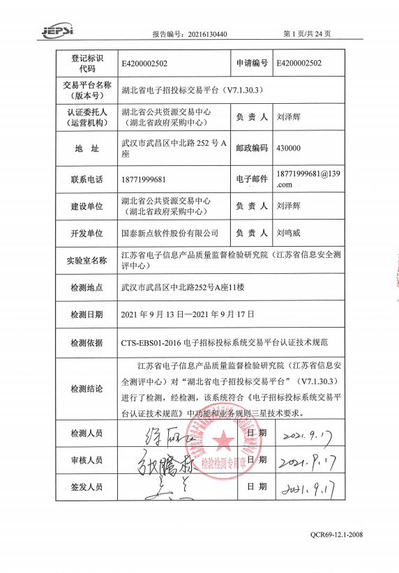 湖北省电子招投标交易平台通过三星检测认证的公告