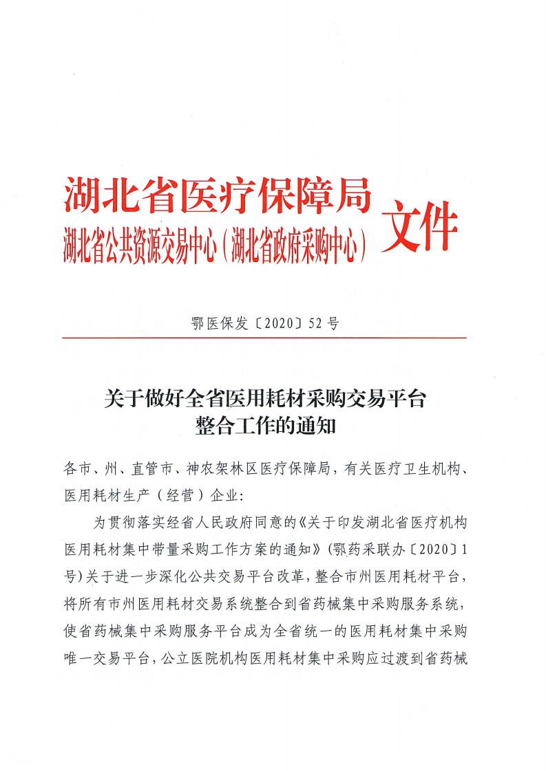 【平台整合】关于做好全省医用耗材采购交易平台整合工作的通知
