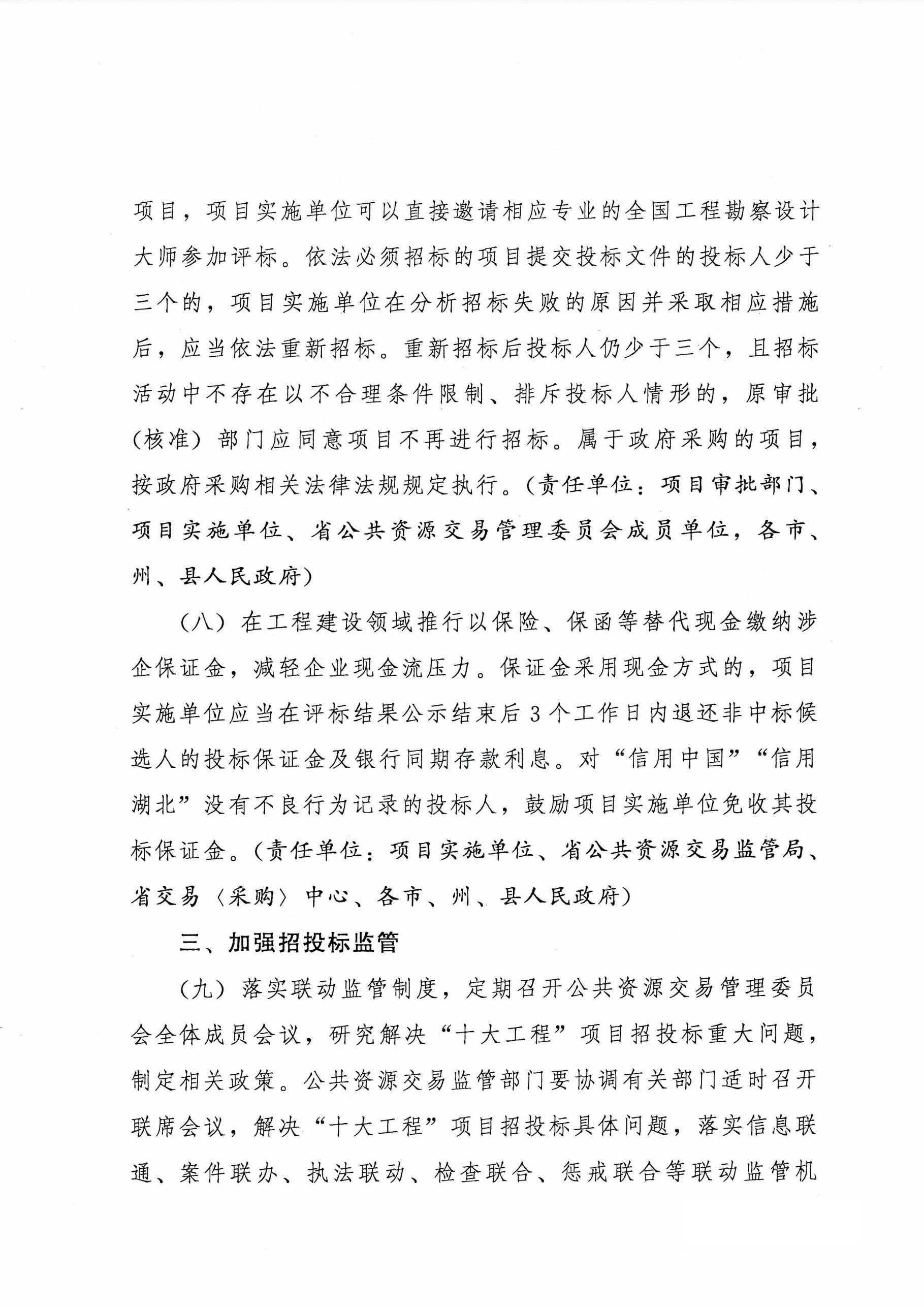 | 7 | 在工程建设领域推行以保险、保函等替代现金缴纳涉企保证金。保证金采用现金方式的,项目实施单位应当在评标结果公示结束后3个工作日内退还非中标候选人的投标保证金及银行同期存款利息。 | 饶建国 | 综合处 |