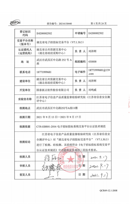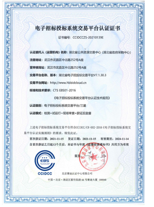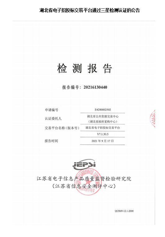 湖北省电子招投标交易平台通过三星检测认证的公告
