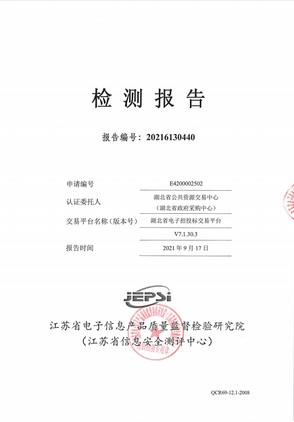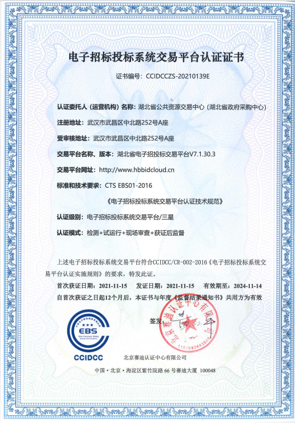 湖北省电子招投标交易平台通过三星检测认证的公告