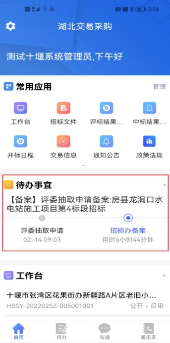 相较于原来的办事流程必须登录到电脑上才可以办公,目前通过手机登录湖北交易采购APP,点击【待办事宜】模块,可以随时随地的进行全流程信息审核。