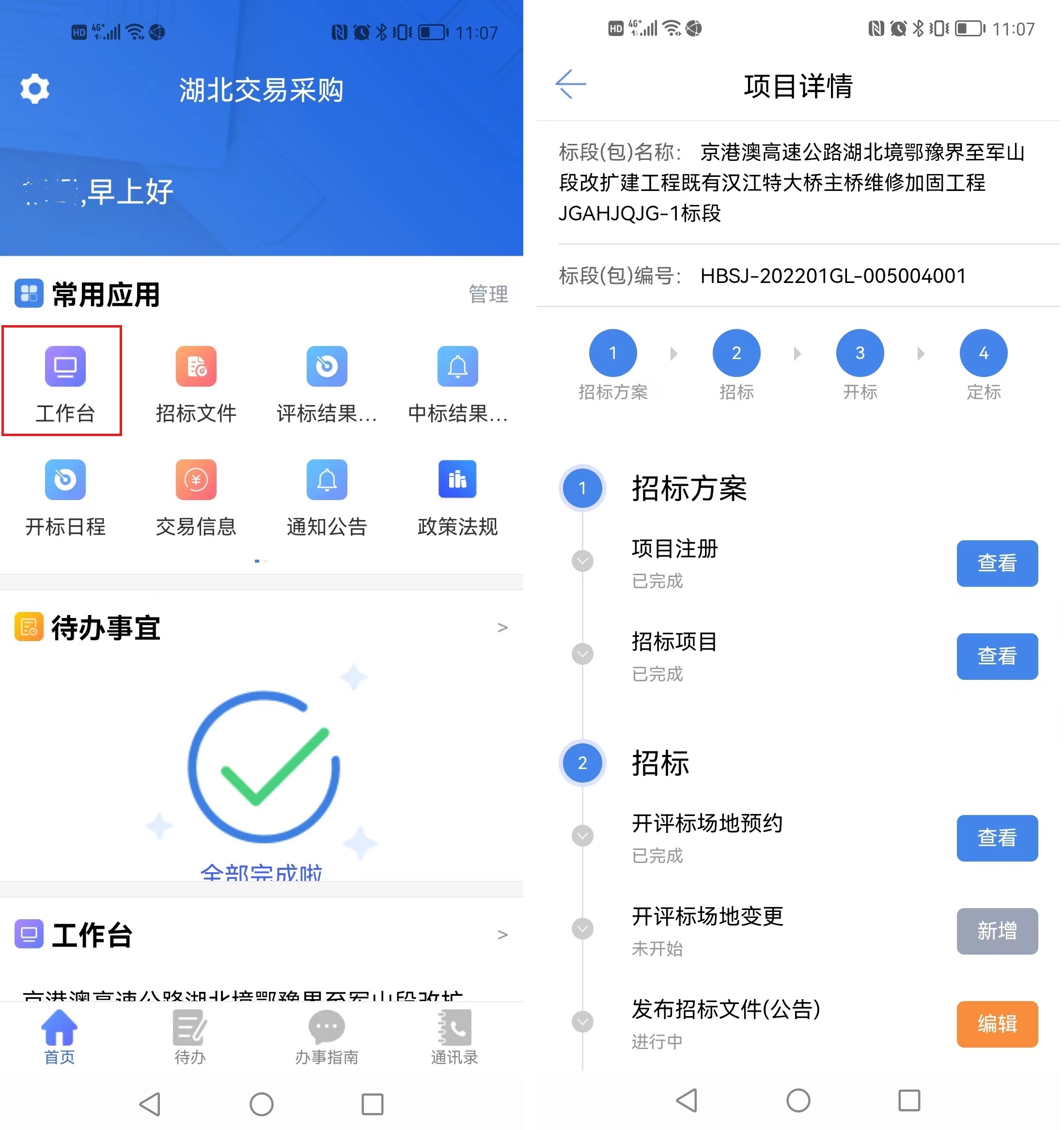 通过工作台,可以随时查看到权限范围内的招标全流程信息。