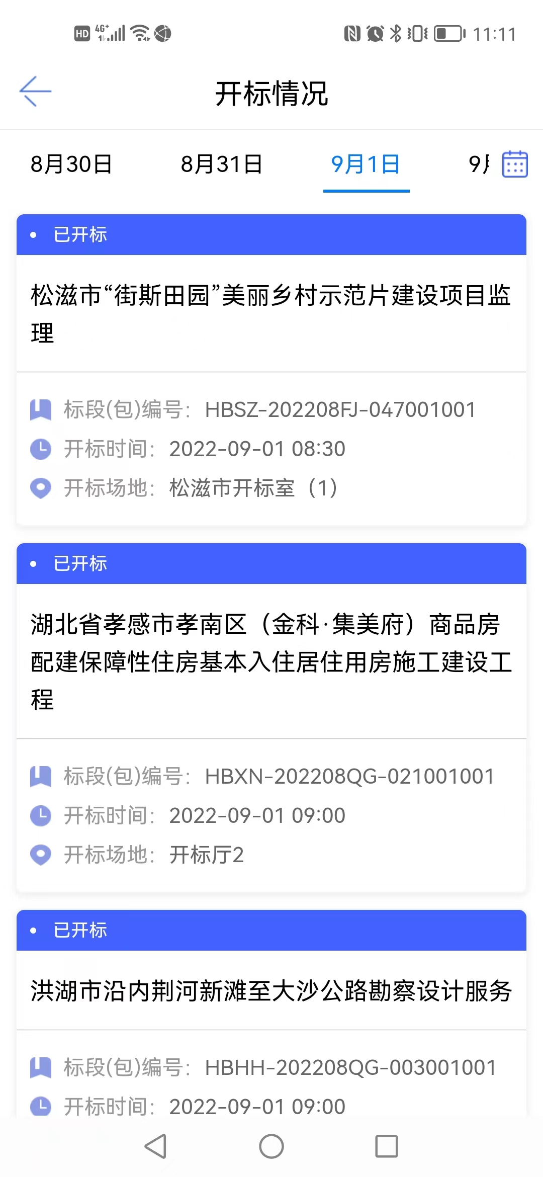 通过开标日程,可以随时按日期查看当天的开标情况以及详情信息。