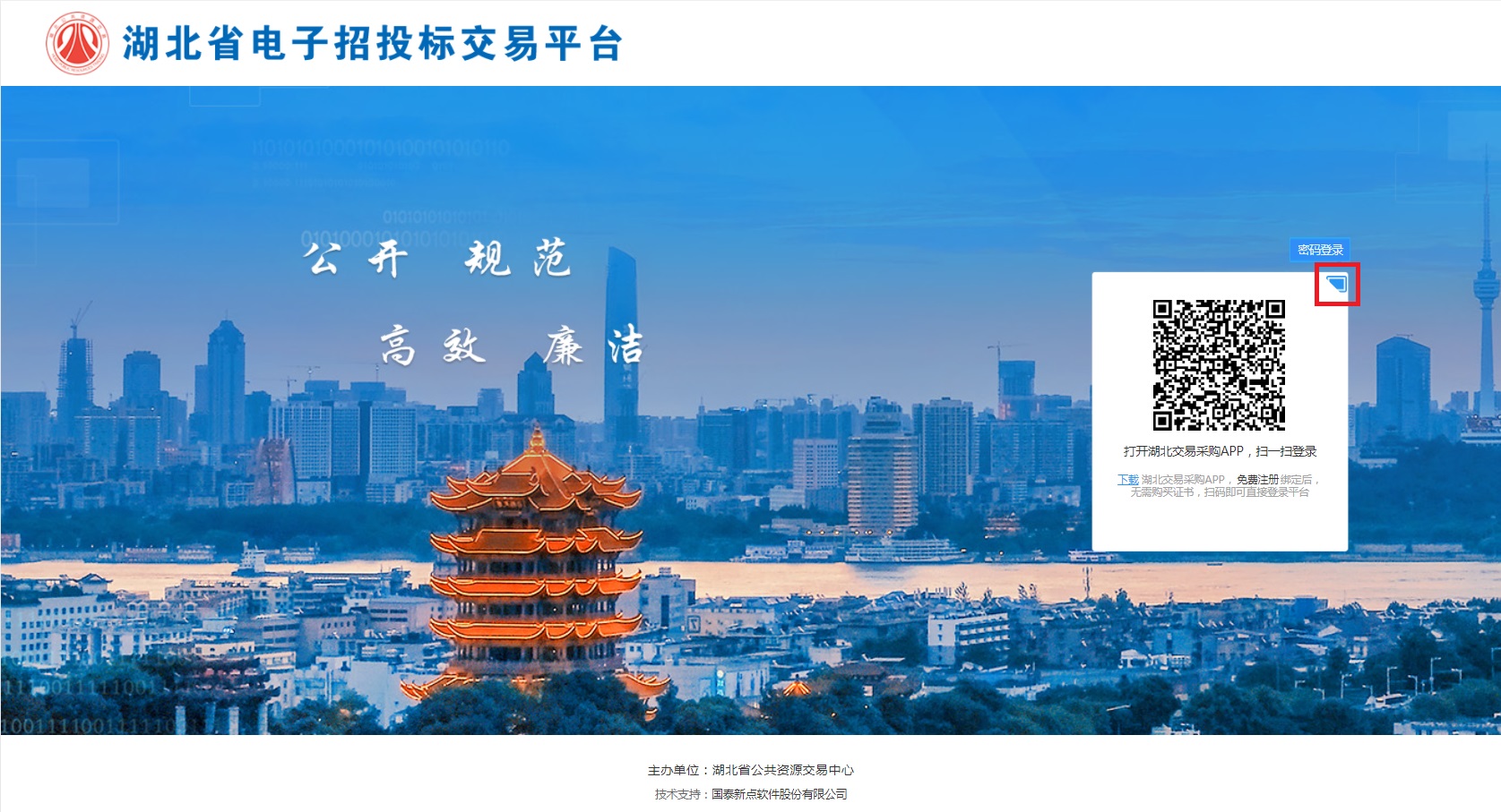 下载位置三:湖北省电子招投标交易平台网站首页,点击【交易管理登录】—切换二维码—使用手机浏览器扫码下载安装。