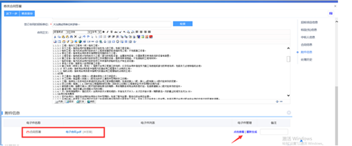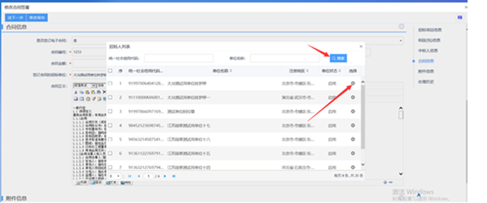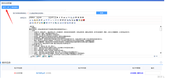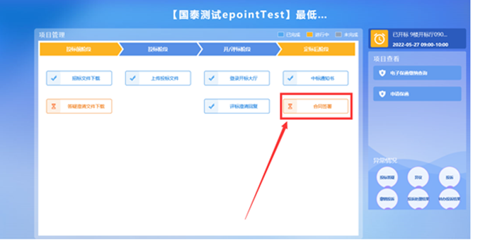 1、 中标单位登入业务系统-中标项目-项目流程-合同签署