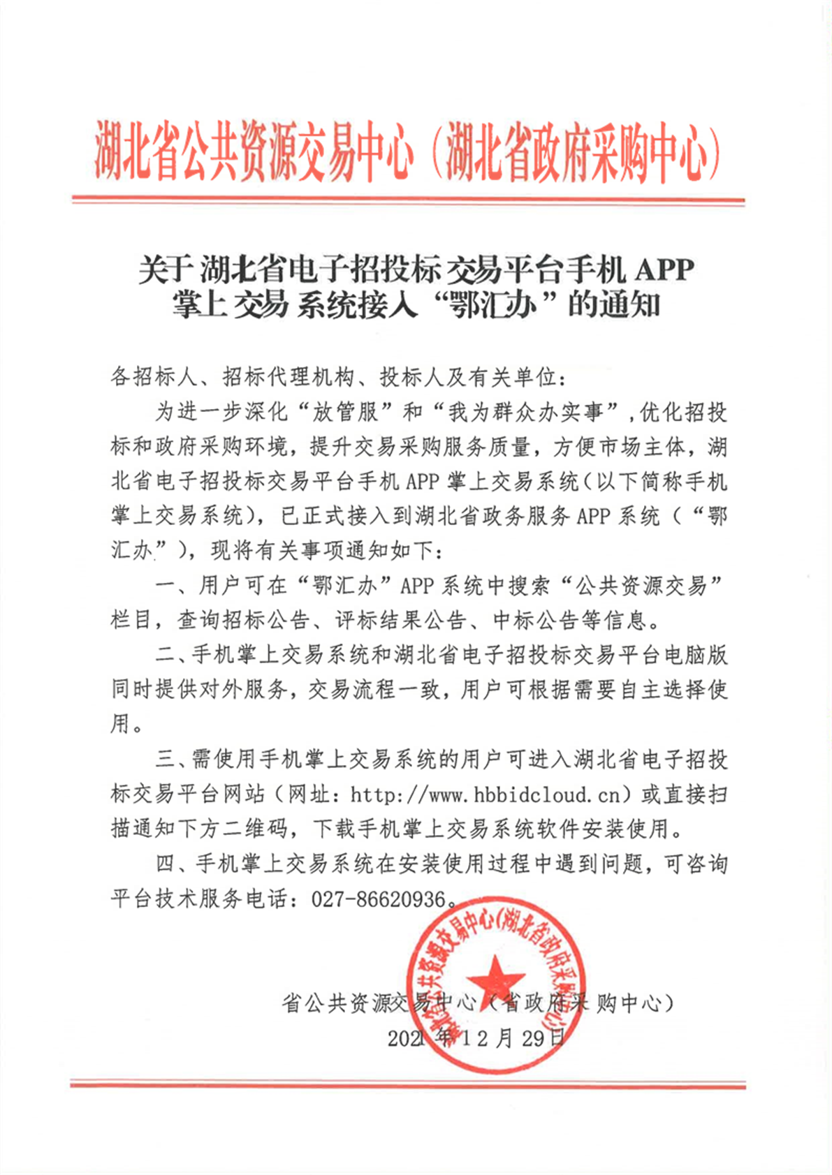 关于湖北省电子招投标交易平台手机APP掌上交易系统接入“鄂汇办”的通知