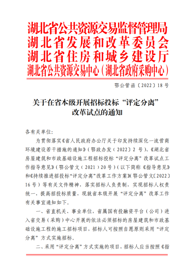 关于在省本级开展招标投标“评定分离”改革试点的通知