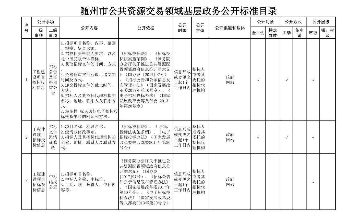 随州市公共资源交易领域基层政务公开标准目录