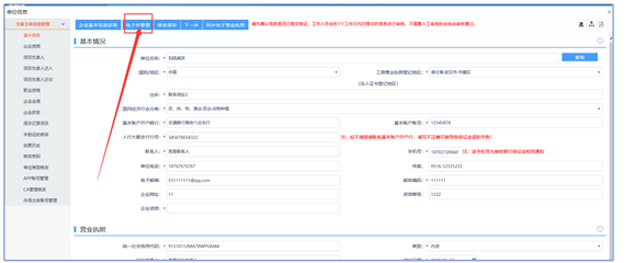 1、 市场主体登入到业务系统会员端后,点击页面右上角【单位信息】