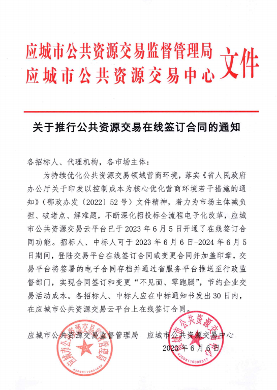 关于推行公共资源交易在线签订合同的通知