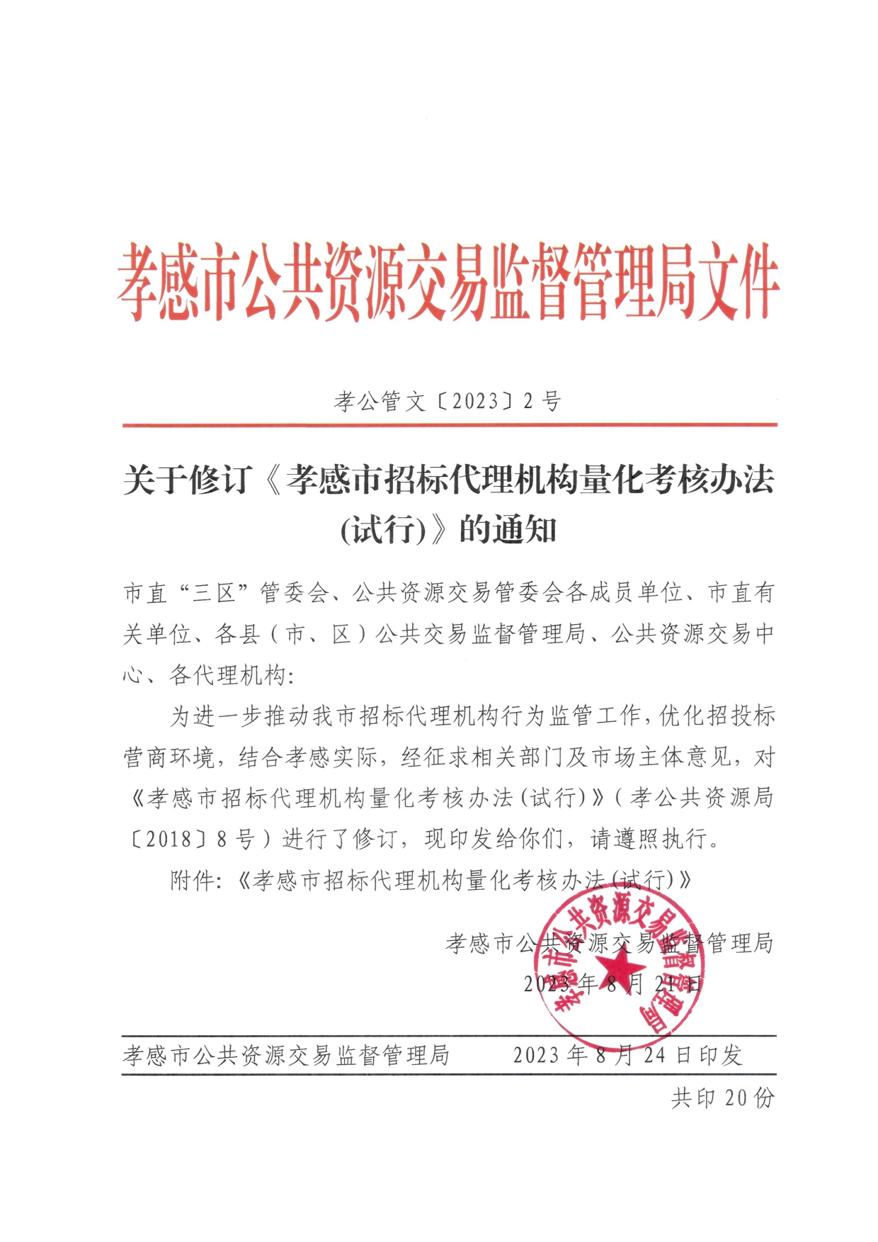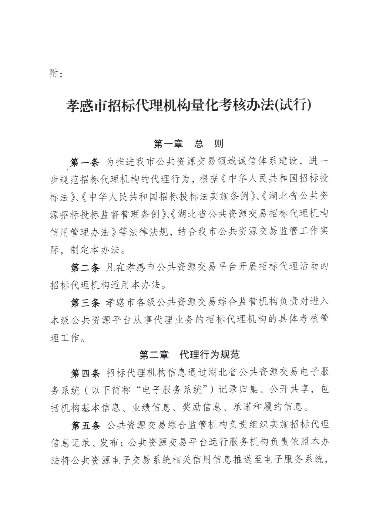 关于修订《孝感市招标代理机构量化考核办法(试行)》的通知