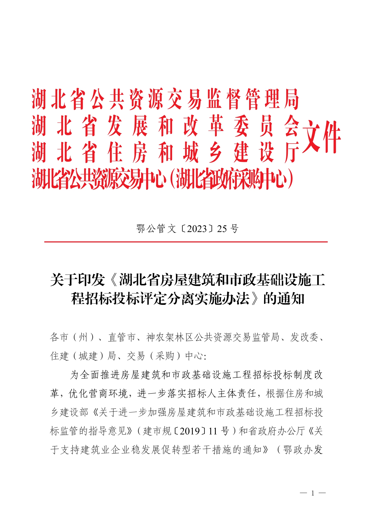 关于印发《湖北省房屋建筑和市政基础设施工程招标投标评定分离实施办法》的通知