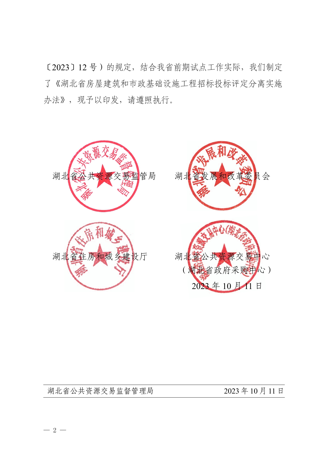 20231011湖北省房屋建筑和市政基础设施工程招标投标评定分离实施办法.pdf