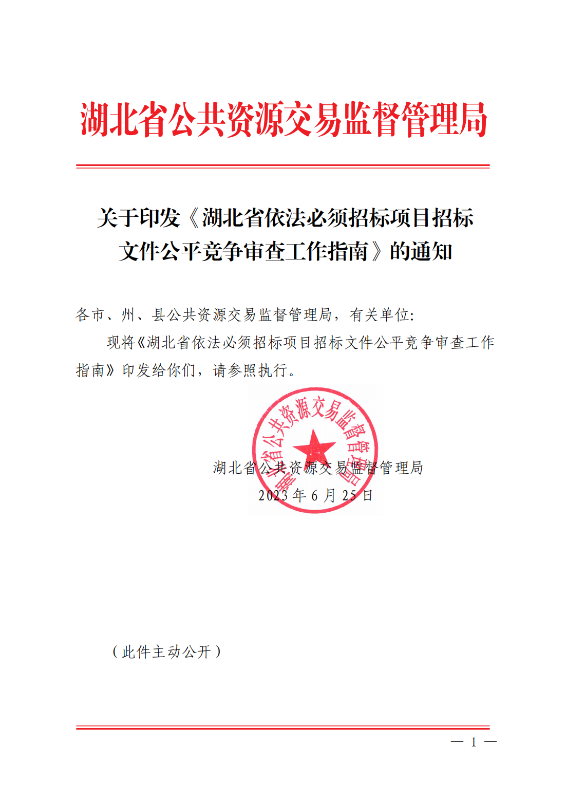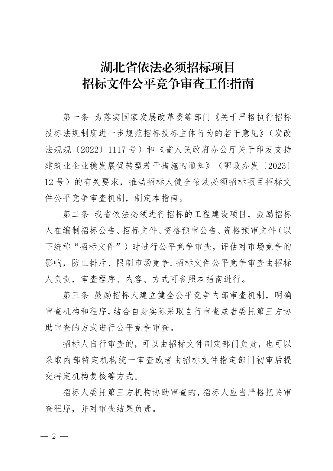 附件:关于印发《湖北省依法必须招标项目招标文件公平竞争审查工作指南》的通知(1).pdf