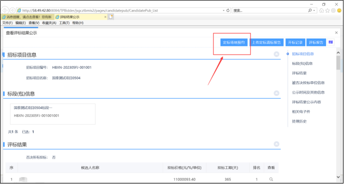 上传定标清标报告前提条件:项目为评定分离项目,且评标结果公示发布并审核通过。