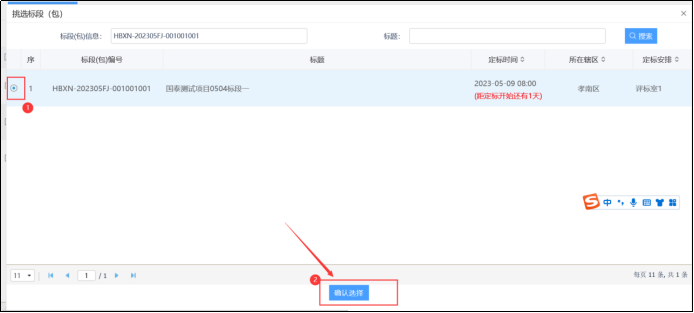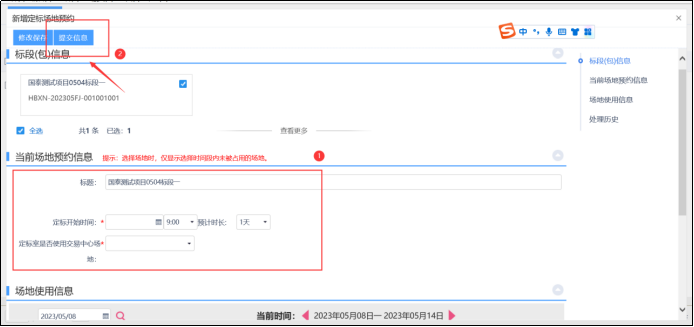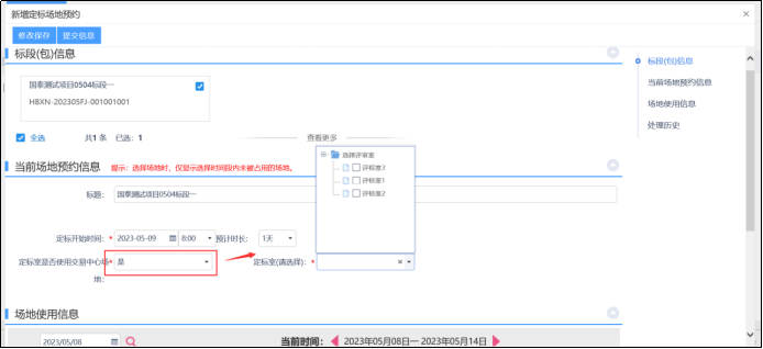 (1)当“定标室是否使用交易中心场地”选择为“是”时,则直接选择交易中心定标室场地;