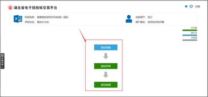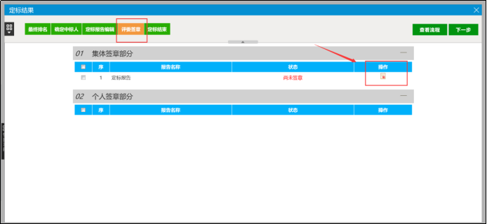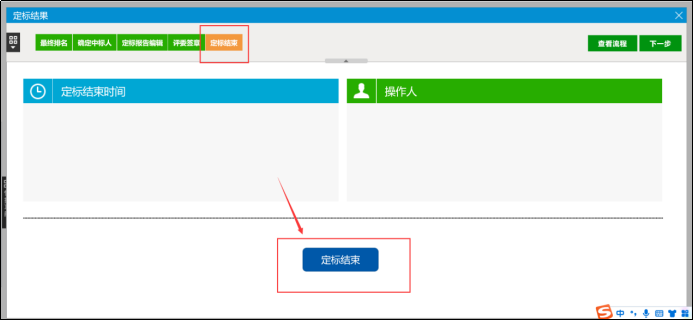 (5)所有评委签章完成后,由组长点击【定标结束】,结束定标。
