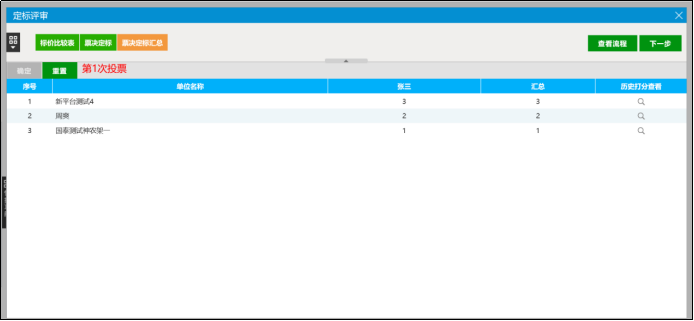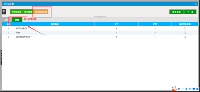 (3)点击【票决定标汇总】按钮,组长需对各评委的评审结果进行汇总。