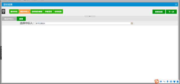 (2)点击【确定中标候选人】按钮,组长选择“中标人”,并点击【确定中标人】按钮即可。